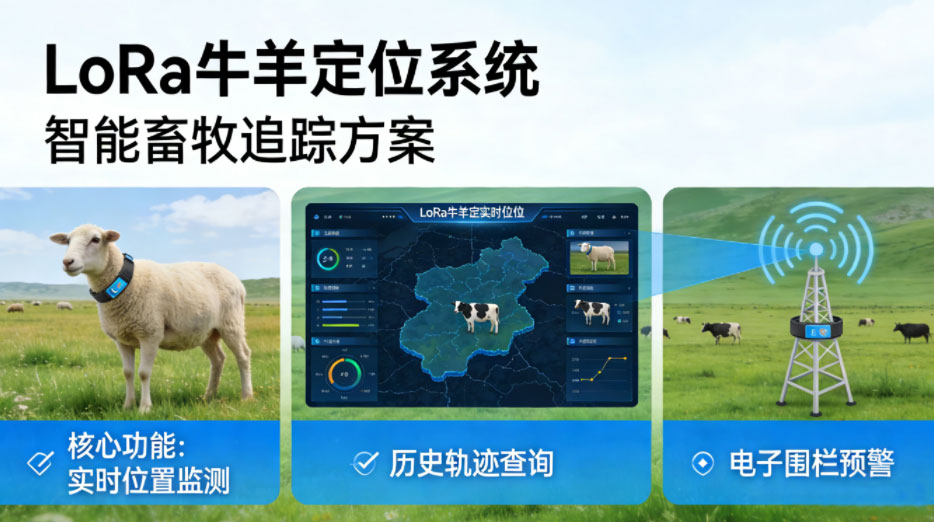 基于LoRaWAN通信的牛羊定位追踪解决方案,通过为牲畜佩戴内置多传感器的智能定位项圈,构建“端-边-云”协同的物联网系统。系统由牛羊定位项圈、LoRaWAN室外网关、网络服务器和畜牧管理平台四层架构组成:项圈周期性采集定位、运动步数及环境温湿度数据,通过远距离、低功耗的LoRaWAN网络传输至网关(覆盖直径5-10公里);网关通过4G/以太网将数据上传至云端服务器,最终在管理平台实现实时位置追踪、电子围栏预警、运动轨迹分析及环境监测等功能,形成从数据采集到智能决策的全链路闭环。